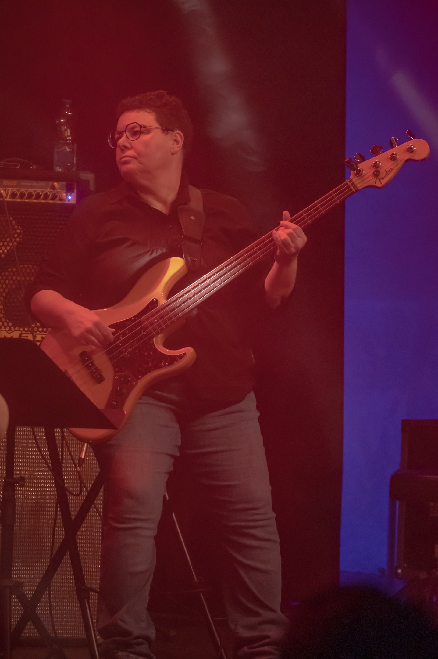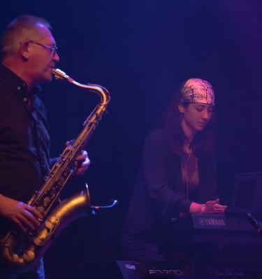 Formée au saxophone, Corinne a longtemps évolué dans l’univers des vents avant de succomber, plus tard, à l’appel irrésistible de la basse. Cet instrument l’attirait depuis toujours, et elle y a trouvé un nouveau terrain d’expression où son sens du rythme et du groove s’épanouit pleinement.